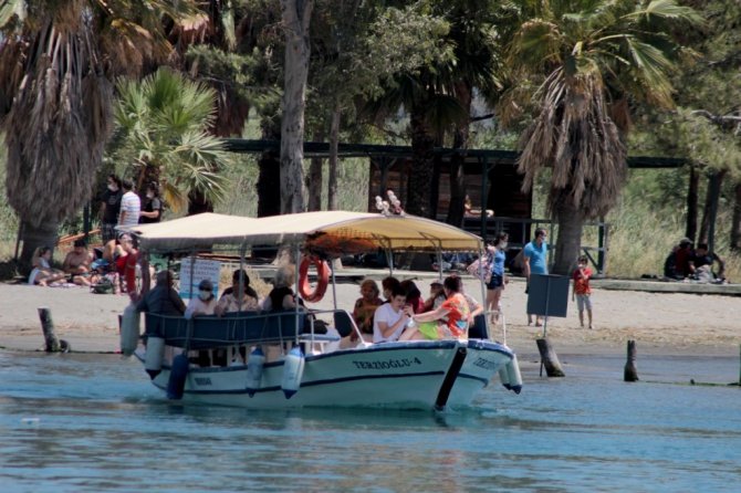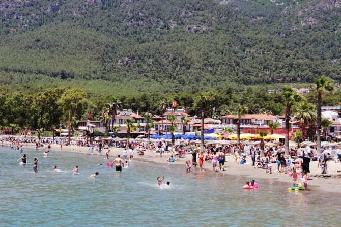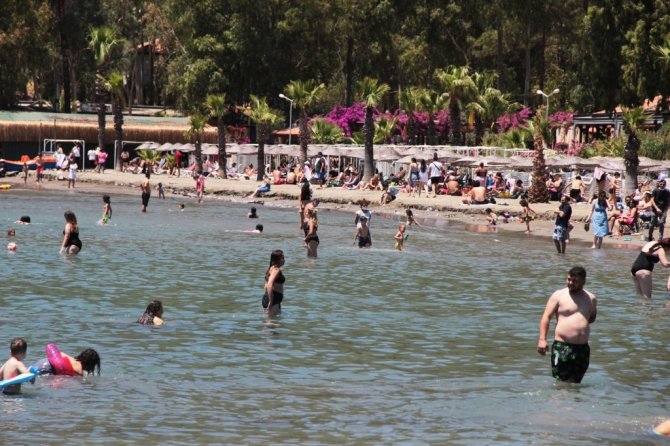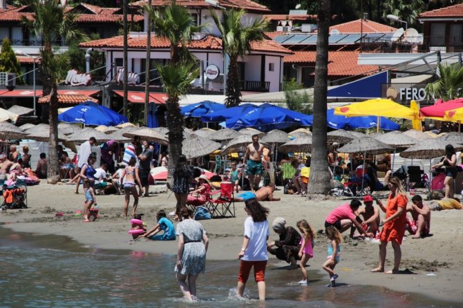 Günübirlik tatilcilerin gözde sahili "Sakin Kent" unvanlı Akyaka sahiline Aydın, İzmir ve Denizli gibi yakın illerden araçları ile gelen yerli turist deniz ve güneşin keyfini çıkardı.