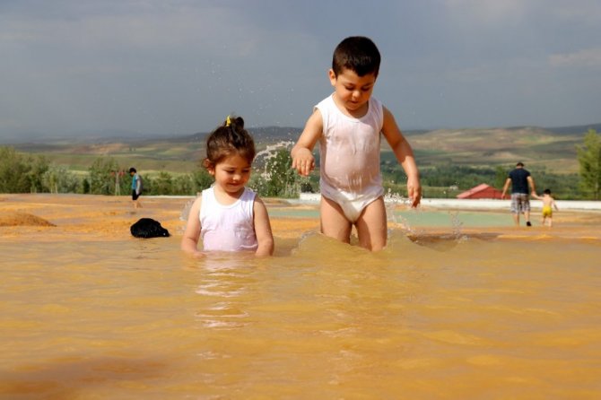 Kademeli normalleşme sürecinin üçüncü etabının başlamasıyla, sıcak havayı da fırsat bilen vatandaşlar Pamukkale'nin kardeşi Altınkale'ye akın ediyor.