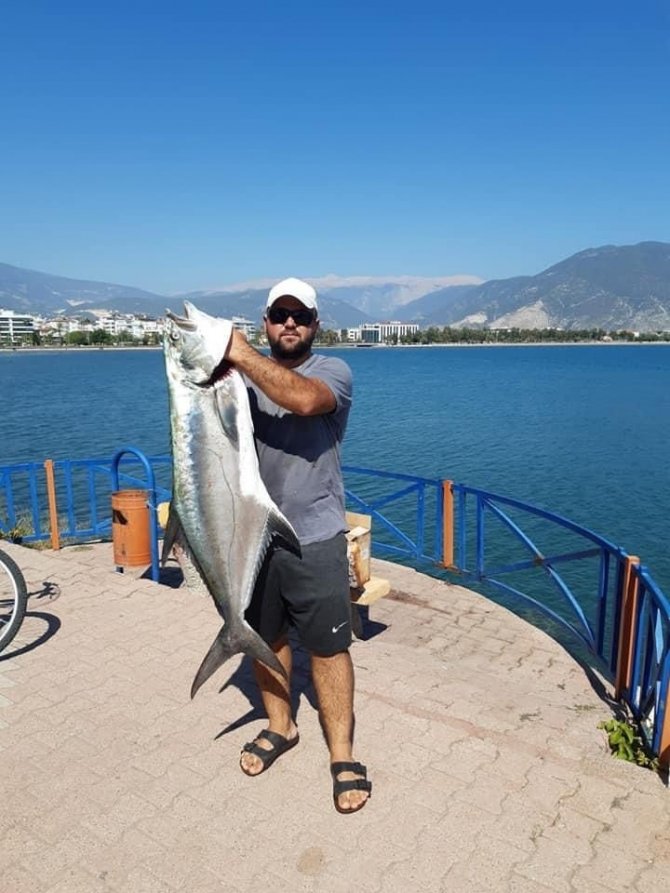 Finike Limanı'nın mendirek kısmında amatör balıkçı Yaşar Çakıroğlu, kıyıdan attığı oltayla 15 kiloluk liça balığı avladı. Çakıroğlu, yaklaşık 15-20 dakika balığı kıyıya çekmek için uğraştığını belirti. Balığı kıyıya çıkarmayı başaran balıkçı Yaşar Çakıroğlu, 15 kiloluk balıkla fotoğraf çektirdi.