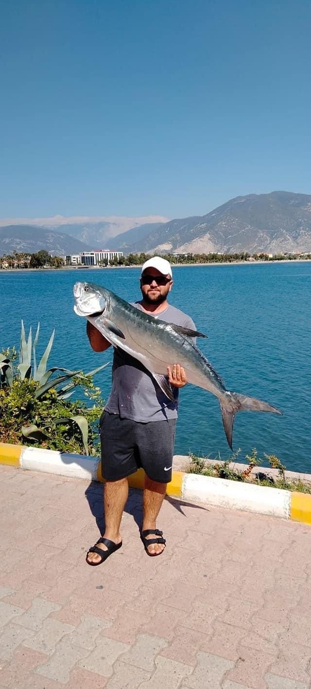 Antalya'nın Finike ilçesinde amatör balıkçı, 15 kilo ağırlığında liça balığı tuttu.