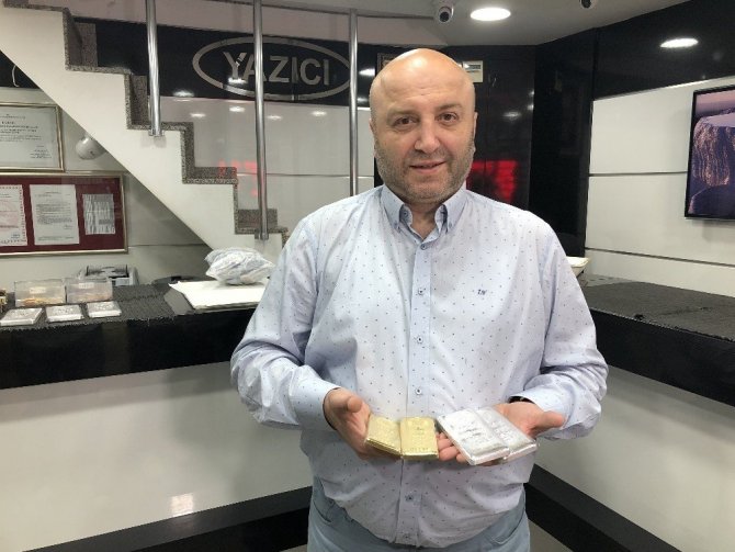 Son zamanlarda gümüşe de talebin olduğuna dikkat çeken Yazıcı, "1 kg gümüş şu anda 5 bin lira civarında işlem görüyor. Hem altın hem de gümüş rekor seviyelere ulaştı. Vatandaş, 1 kg altını 410 bin liraya almak yerine 5 bin liraya 1 kg gümüş alıyor. Daha tasarruflu ve toplu görüyor. Düğün sezonu açıldı. 10 gram bilezik 4 bin liradan işlem görüyor. Eskiden 20 gram olan bilezikler şuanda 10 gram görünümünde, 10 gramlık bileziklerde 5 gram görünümüne düştü. Vatandaş şuanda gösterişli ve hafif olan takıları tercih ediyor." açıklamalarında bulundu.