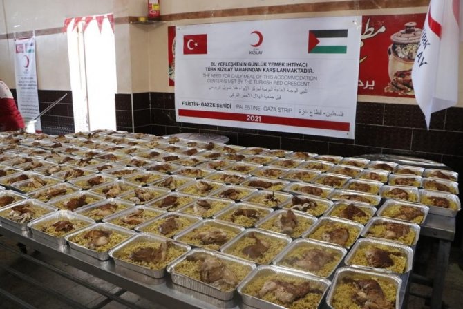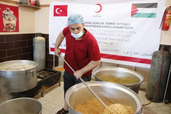 Sivillerin hedef olduğu Gazze'deki saldırılarda mağdur olan insanlara çok kapsamlı insani yardımlarını devam ettiren Türk Kızılay, bölgede sıcak yemek dağıtımına da başladı.