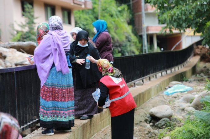 Rize'de etkili olan şiddetli yağışlar sonucu meydana gelen sel felaketinin ardından Kızılay bölgedeki selzedeler için yardımlarını devam ettiriyor.