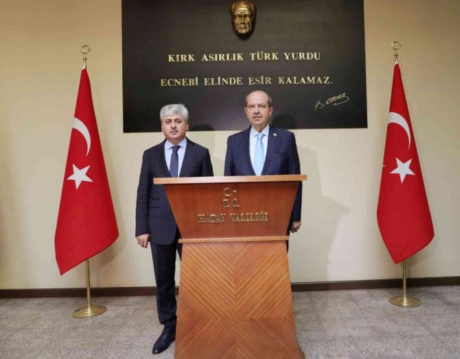 Kuzey Kıbrıs Türk Cumhuriyeti Cumhurbaşkanı Ersin Tatar, Hatay Valisi Rahmi Doğan'ı makamında ziyaret etti. Tatar, Türkiye Cumhuriyeti devletinin desteğiyle Doğu Akdeniz'de Kıbrıs halkının refahı için birlikte hareket etmek gerektiğini söyledi.