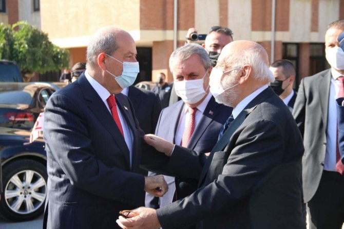 "Kuzey Kıbrıs Türk Cumhuriyeti'nin güçlendirilmesi ve Türkiye Cumhuriyeti ile her türlü iş birliğiyle mavi mavi vatan varlığımızı sürdürmek bizim için esas olandır. Başımız dik, onurlu, kendimize güvenen, birliğimize inanan, gücümüzü bilen Türkiye ile birlikte o duruşu sergileyebilen başı dik bir şekilde o masada oturabilmek farklı bir durum ortaya çıkartmaktadır. Eğer ezik ve boynunuz eğik durursanız o zaman size bu oyunları arka arkaya sıralarlar."