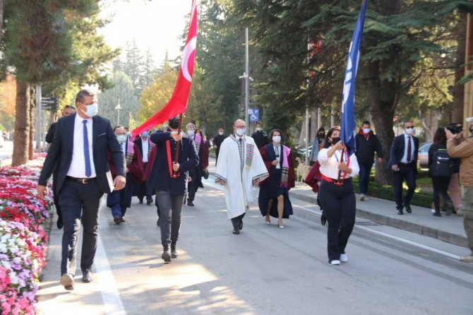 Tören, Yunus Emre Kampüsü Hukuk Fakültesi önünde Rektör Prof. Dr. Fuat Erdal'ın katılımıyla Atatürk büstüne çelenk bırakılmasıyla başladı. Buradan kortej eşliğinde akademik yıl başlangıcı dolayısıyla hazırlanan program için Atatürk Kültür Merkezi'ne geçildi. Burada Kuzey Kıbrıs Türk Cumhuriyeti Cumhurbaşkanı Ersin Tatar'ı; Vali Erol Ayyıldız, Anadolu Üniversitesi Rektörü Prof. Dr. Fuat Erdal, Eskişehir Osmangazi Üniversitesi Rektörü Prof. Dr. Kemal Şenocak, İl Garnizon Komutanı Hava Kuvveti Komutanı Orgeneral Atilla Gülan, Büyük Birlik Partisi Genel Başkanı Mustafa Destici, AK Parti Eskişehir Milletvekili Nabi Avcı, CHP Eskişehir Milletvekili Jale Nur Süllü, MHP Eskişehir Milletvekili Metin Nurullah Sazak, İYİ Parti Eskişehir Milletvekili Arslan Kabukcuoğlu ve diğer protokol üyeleri karşıladı.