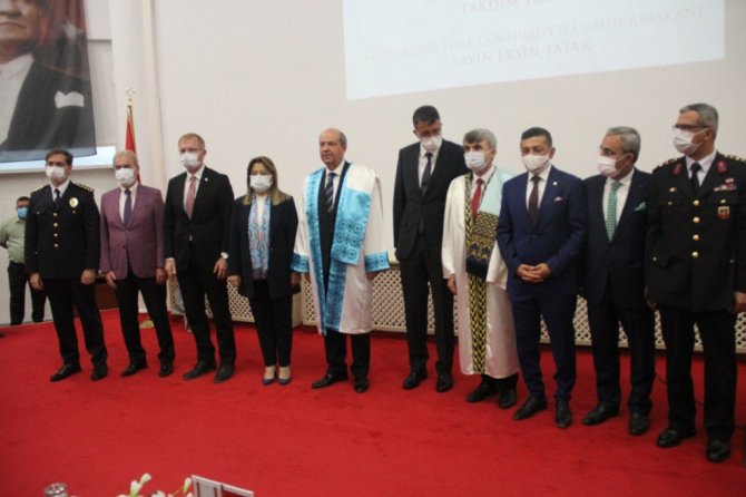 Kuzey Kıbrıs Türk Cumhuriyeti (KKTC) Cumhurbaşkanı Ersin Tatar, Kütahya Dumlupınar Üniversitesi (DPÜ) tarafından düzenlenen "Geçmişten Günümüze Kıbrıs Türk'ünün Adadaki Varoluş Mücadelesi" konulu konferansta konuştu. Törende Tatar'a "Fahri doktora" unvanı verildi.