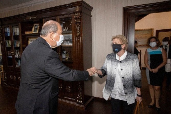 Kuzey Kıbrıs Türk Cumhuriyeti (KKTC) Cumhurbaşkanı Ersin Tatar, Birleşmiş Milletler Genel Sekreterinin Kıbrıs Özel Danışmanı Jane Holl Lute'yi kabul etti.