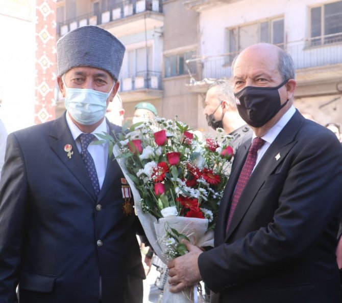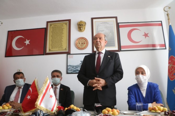 1974 yılında gerçekleştirilen Barış Harekatı'nın önemine vurgu yapan Cumhurbaşkanı Tatar, "Geçmişe baktığımız da yıllarca Kıbrıs Türk halkı oralarda Türkiye oraya gidemeden kahramanlık yapmış, direnmiş ve çok acılar çekmiştir. Ama netice itibariyle var oluşunu sürdürebilmiş. Haliyle 1974 sabahında Barış Harekatı'yla, adaya barış götürülmesi suretiyle Doğu Akdeniz'de ki şuan ki siyasi dengenin kurulmasına da büyük hizmet ettiniz. Yoksa orası öyle görünüyor ki şimdiye kadar bir Yunan adası olacaktı. Rumların tamamıyla hakimiyetine geçecekti. 1974 Barış Harekatı'yla o engellenmiştir. Kıbrıs'ın 2 eşit halkının bir tanesi olan Türk Halkıda kendi devletini kurabilmiştir. Kendi bağımsız devletiyle Kuzey Kıbrıs Türk Cumhuriyeti'yle şuanda Doğu Akdeniz'de biz hem kendi güvenliğimiz hem de Türkiye'nin 2 bin kilometrelik sahil şeridinin güvenliği için önemlidir. Tabi ki bizimde varlığımız, Türkiye'nin bize olan desteğidir. Bize Türkiye'nin silahlı kuvvetleriyle garantörlüğüdür" şeklinde konuştu.