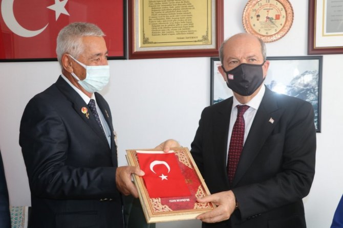 Görüşme esnasında açıklamalarda bulunan Cumhurbaşkanı Tatar, Kıbrıs Gazilerinin Barış Harekatı'nda verdikleri mücadeleden övgüyle bahsederek, "KKTC'den Malatya'mıza sevgi ve saygılarımızı getirdim. Kıbrıs Türk halkı adına sizlere en kalbi duygularımla muhabbetlerimi iletmek istiyorum. Özellikle Kıbrıs gazileri, çok önemlidir. 20 Temmuz 1974 sabahında Mehmetçik'in Kıbrıs'a adım atmasıyla Kıbrıs Türk'ü özgürlüğüne ve bağımsızlığına kavuşmuştur. O günden bugüne Kıbrıs'ta barış vardır ve o barışın güvenliği içerisinde Kıbrıs Türk halkı da kendi devletinin çatısı altında orada hür ve özgür yaşamaktadır. Bunu biz tabi ki Türkiyemizin hükümetlerine, devlet büyüklerine ve aynı zamanda Kıbrıs Gazilerine borçluyuz. Çünkü Kıbrıs Gazileri, Kıbrıs Barış Harekatı'nda büyük bir kahramanlık, büyük bir destan yazmak suretiyle daha önce bizim Mücahitlerimizin direnişini hep birlikte 20 Temmuz'un sabahında ve bilahare yaptıkları güzel çalışmalarla Kıbrıs'a barışı getirmişlerdir. Dolayısıyla sizlere minnettarım. Tüm Türkiye'de ki gazilerimize şükranlarımı iletmek istiyorum. Tabi ki aramızdan ayrılanlara ve şehitlerimize rahmet diliyorum. Yaşayan gazilerimize de sağlık ve afiyet diliyorum. Sizler her zaman bizim gönlümüzdesiniz. Sizler bizim gönlümüze taht kurmuş tursunuz" dedi.