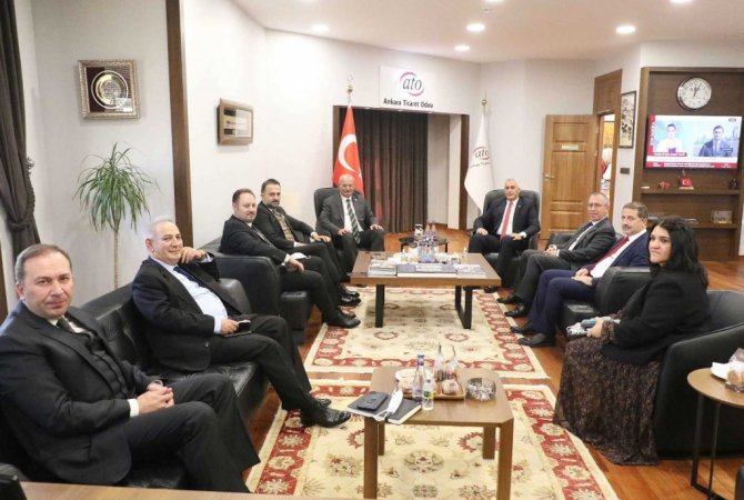 KKTC Milli Eğitim ve Kültür Bakanı Olgun Amcaoğlu, KKTC'nin Ankara Büyükelçisi Kemal Köprülü, Bakanlık Müsteşarı Aytunç Şirket, Yüksek Öğrenim ve Dış İlişkiler Dairesi Müdürü Ziya Öztürkler ve Eğitim ve Kültür Ataşesi Rauf Ataöv'le birlikte Ankara Ticaret Odası (ATO) Yönetim Kurulu Başkanı Gürsel Baran'ı makamında ziyaret etti. Turizm ve eğitim sektörlerinin faaliyetlerine başlamasıyla birlikte pandeminin KKTC ekonomisi üzerindeki olumsuz etkilerinin hafiflediğini kaydeden Bakan Amcaoğlu, temel eğitimde 53 bin öğrenci ve 6 bin öğretmenin yüz yüze eğitime geçtiğini aktardı. Ekonomilerin gelişiminde meslekli çalışanın önemine dikkat çeken Bakan Amcaoğlu, "Yılda bin gence mesleki eğitim vererek 10 yılda 10 bin meslekli genç yetiştirmek istiyoruz. 14 ay olan askerlik süresini meslek lisesi mezunlarına 12 aya indirince mesleki eğitime olan ilgi de arttı" dedi. Amcaoğlu, KKTC'de işletmelerle iş garantili eğitim protokolleri gerçekleştirdiklerini de kaydetti.