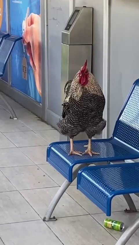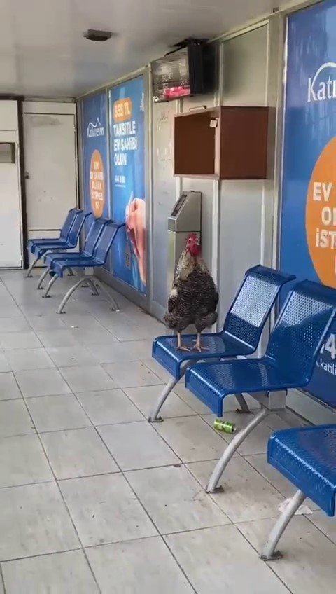 Merkez Seyhan ilçesi Duygu Kafe meydanındaki klimalı otobüs durağına giren bir horoz, durakta bulunan banklara çıkıp ötmeye başladı.