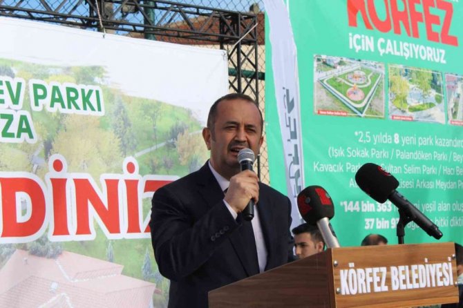 Cevher Dudayev Parkı'nın açılış töreninde konuşan Körfez Belediye Başkanı Şener Söğüt, "Genel olarak, bir sanayi kenti olarak bilinen Körfezimizin, sanayi dışında kültür, turizm, spor, doğa, tarım ve çevre gibi birçok alanda öne çıkan yönleri olduğunu özellikle belirtmek isterim. Bu özelliklerden herhangi birisini göz ardı etmek gibi bir durumumuz olamaz. Çocuklar en değerli toplumsal göstergedir. Eğer çocuk dostu bir kent inşa edebiliyorsak herkes için yaşanabilir bir kent üretebiliyoruz denilebilir. Yerel yönetimler çocuklar için, gençler için konforlu, sağlıklı, doğal ve engelsiz oyun mekanları üretmelidir. Bu amaçla yaptığımız bu parkta, toplam 3 buçuk milyon lira maliyetle hizmete sunulmuş parkımızın toplam alanı 15 bin metrekaredir. 9 bin 500 metrekaresi yeşil alan olarak tasarlanmış olup, parkımızda 1 halı saha, 1 basketbol sahası, sosyal ve spor gelişim alanlarının yanı sıra dinlence ve çocuk alanları da bulunmaktadır. Yine bu alana 180 adet ağaç ve 15 bin çalı bitkisi yaparak parkımızın Körfez'de vatandaşlarımıza aileleriyle zaman geçirebilecekleri bir alan olarak hizmet vermesini sağlamış bulunmaktayız. Sadece Körfez'de değil, Kocaeli'nin tüm ilçelerinde yapılan her projede planlama, gerekse uygulama alanında bizlere imkanlarının en üst seviyesinde olanaklar sunan Kocaeli Büyükşehir Belediyemize, onun saygıdeğer başkanı sayın Doç. Dr. Tahir Büyükakın'a ve çalışma arkadaşlarına sonsuz teşekkürlerimi arz ediyorum" diye konuştu.