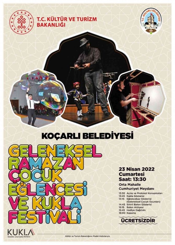 23 Nisan Ulusal Egemenlik ve Çocuk Bayramı dolayısıyla Koçarlı Belediyesi tarafından, "Çocuk Oyunları ve Kukla Festivali" gerçekleşecek.