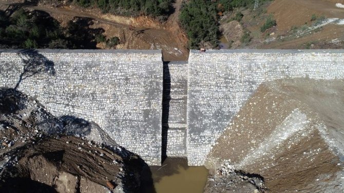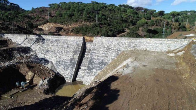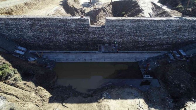 Aydın'ın Koçarlı ilçesinde Devlet Su İşler (DSİ) tarafından yapılan Mersinbelen Hayvan İçme Suyu (HİS) Göleti'nin yapım çalışmaları devam ediyor.