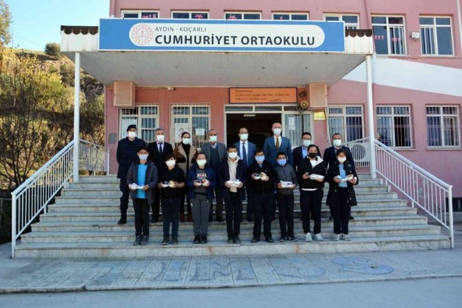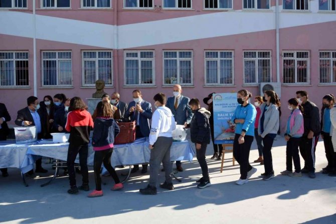 Eğitimlerden sonra Koçarlı Kaymakamı Ersin Tepeli, Aydın İl Tarım ve Orman Müdürlüğü Balıkçılık ve Su Ürünleri Şube Müdürü Edip Yağan, İlçe Tarım ve Orman Müdürü Mehmet Örnek, İlçe Milli Eğitim Müdürü Osman Arıkoğlu, İlçe İdare Amirleri, Okul Müdürü Turgay Arslan, İl Müdürlüğü, İlçe Müdürlüğü ve okul personellerinin katılımları ile 500 adet balık ekmek, helva ve su dağıtımı yapılarak öğrenciler ile buluşturuldu.
