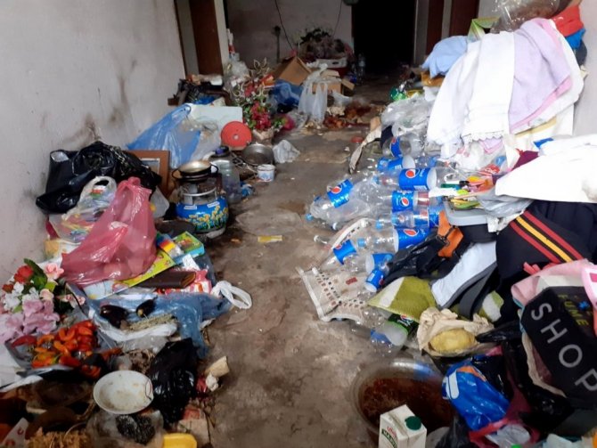 Osmaniye'nin Düziçi ilçesinde akli dengesi yerinde olmadığı iddia edilen bir vatandaş sokaktan topladığı çöpleri evinde biriktirdi.