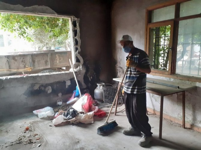 Evde biriken çöplerin temizlendikten sonra evin yıkanıp dezenfekte edildiğini söyleyen Düziçi Belediyesi Zabıta Müdürü Ömer Saygılı, "Cumhuriyet Mahallesi'nde yoğun şikayet aldığımız bir adrese geldik. Adreste oturan vatandaşın emekli orman muhafaza memuru olduğunu öğrendik. Sonradan geçirdiği bir hastalıktan dolayı akli dengesini kaybettiğini sokaklardan çöp toplayarak evinde biriktirdiğini tespit ettik. Komşuların da belediyeye verdiği müracaatları da değerlendirerek Temizlik İşleri Müdürlüğü ile ortak olarak evde biriken çöpleri boşaltıyoruz. Yaklaşık 3 yıldır bu şekilde, her yıl boşaltmak zorunda kaldık. Bu evi üçüncü kez boşaltmamız. Bu son olmayacak. Şahsın akli dengesi yerinde değil. Sabah evden çıkıyor akşam evine geliyor gelirken de sokaklarda bulduğu çöpleri evine getirerek evinde biriktiriyor. Gerek gıda maddesi olsun gerekse başka maddeler olsun yoğun bir koku yaptığı için koşular rahatsız olmuş. Dolayısıyla rahatsız olan komşularda belediyemize müracaat ederek rahatsızlıklarını beyan ediyorlar. Biz de evde biriken çöpleri temizliyoruz. Temizledikten sonra yıkıyoruz daha sonra dezenfekte yapıp ilaçlıyoruz" diye konuştu.
