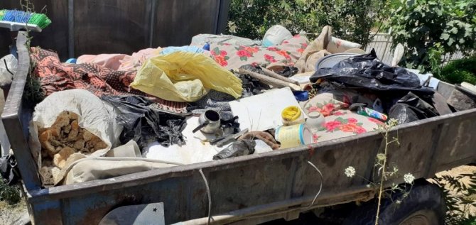 Osmaniye'nin Düziçi ilçesinde psikolojik sorunları olduğu iddia edilen bir kadın, sokaktan topladığı çöpleri evinde biriktirdi. Mahalle sakinlerinin "kokuyor" diye şikayette bulunmaları üzerine belediye ekipleri evden 2 römork dolusu çöp çıkardı.