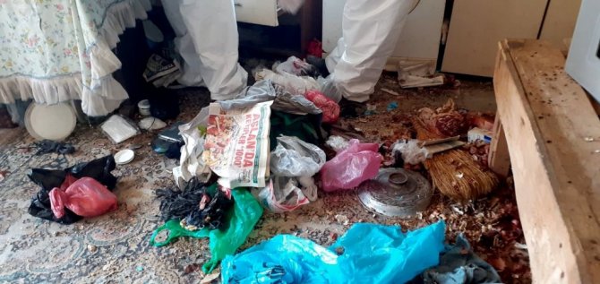 Osmaniye'nin Düziçi ilçesinde psikolojik sorunları olduğu iddia edilen bir kadın, sokaktan topladığı çöpleri evinde biriktirdi.