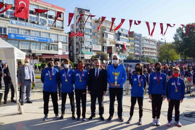 Törende çeşitli yarışmalarda dereceye giren öğrencilere ödülleri Aydın Valisi Hüseyin Aksoy tarafından verilirken, Cumhuriyet Bayramı ile ilgili şiirler de öğrenciler tarafından seslendirildi.
