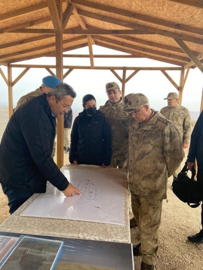 Orgeneral Çetin ve komutanlar, UNESCO Dünya Mirası Geçici Listesi'nde yer alan 3 bin yıllık kalede yapılan kazı çalışmaları hakkında kazı Heyeti Başkanı Doç. Dr. Aytaç Coşkun'dan çalışmalar hakkında bilgi aldı.