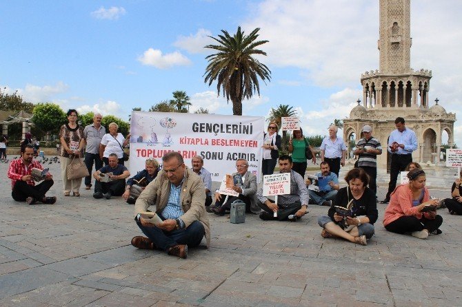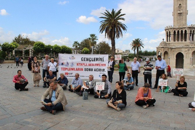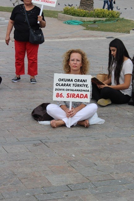 CHP Konak İlçe Örgütü, Türkiye’deki okuma oranının düşüklüğüne dikkat çekmek amacıyla Konak Meydanı’nda bağdaş kurarak kitap okudu. İlçe başkanı Şakir Başak, cep telefonu ve iletişim masraflarına ayda 213 TL ayıran bir ailenin, kitaba yılda 6,5 TL ayırdığını belirterek, “Yurdumuzda 95 kişiye bir kahvehane, 65 bin kişiye bir kütüphane düşüyor” dedi.
