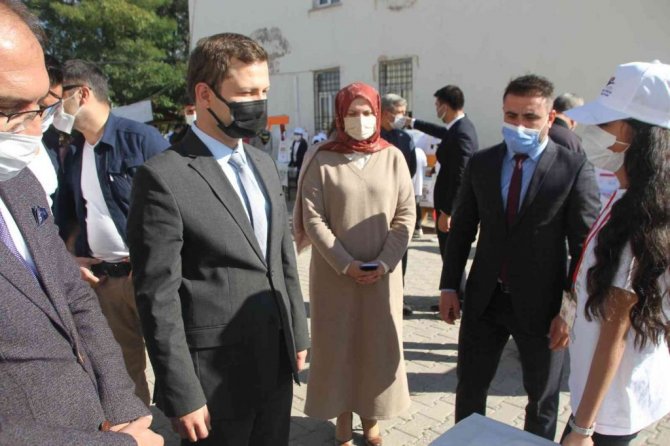 Kaymakam Yiğit Yaşar Demirer ve Belediye Başkanı Abdurahman Ömeroğlu, bilim fuarına katılan tüm öğrencilere kitap hediye etti.