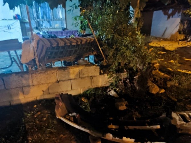 Hatay'da kontrolden çıkan bir otomobil, iki evin bahçe duvarına çarptı. Evin bahçesinde uyuyan kişi yaralandı.
