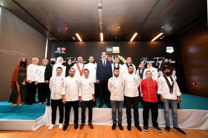 Konya Büyükşehir Belediyesi olarak şehrin yemek kültürünü tanıtmak ve sürdürebilmek adına Konya mutfağı ve Kafemler ile şehre hizmet ettiklerini kaydeden Başkan Altay, "Bunların geliştirilmesiyle ilgili ciddi çalışmalar yürütüyoruz. Özellikle Akyokuş'ta yeni yapacağımız proje, ayrıca Millet Bahçesi içinde yer alacak alanlarda da Konya mutfak kültürünü tanıtmaya devam edeceğiz. Şu anda özellikle çalıştığımız konu, Konya'nın kendine has yemek kültürünü coğrafi işaret olarak tespit edebilmek. Bunun için yapmış olduğumuz 51 başvurudan 21'i neticelendi. 21 ürünümüze daha coğrafi işaret belgesi almış olduk. 30 tanesiyle ilgili süreç devam ediyor. 34 yeni ürünle ilgili de çalışmalarımız tamamlandı, en kısa sürede başvuruları yapmayı arzu ediyoruz" ifadelerini kullandı.