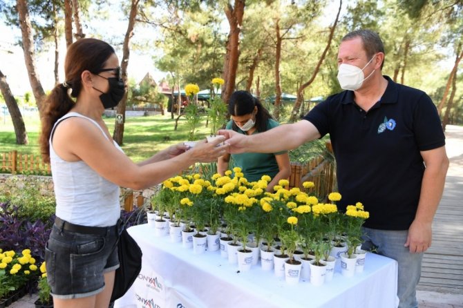 Konyaaltı Belediye Başkanı Semih Esen, orman yangınlarının geride bıraktığı fiziki izlerin yanı sıra insan ruhundaki tahribatı bir nebze olsa hafifletmek istediklerini, bunun için de HayatPark'ta ziyaretçilere 10 bin adet mevsimlik çiçek dağıttıklarını söyledi. Başkan Esen, "Parklarımızı, bahçelerimizi kendi seralarımızda ürettiğimiz mevsimlik bitkilerle düzenli olarak süslüyoruz. Vatandaşlarımızın da balkonlarını ve bahçelerini süslemelerine yardım etmek için mevsimlik çiçekleri ücretsiz olarak dağıttık" dedi.