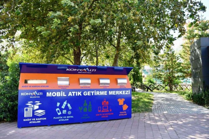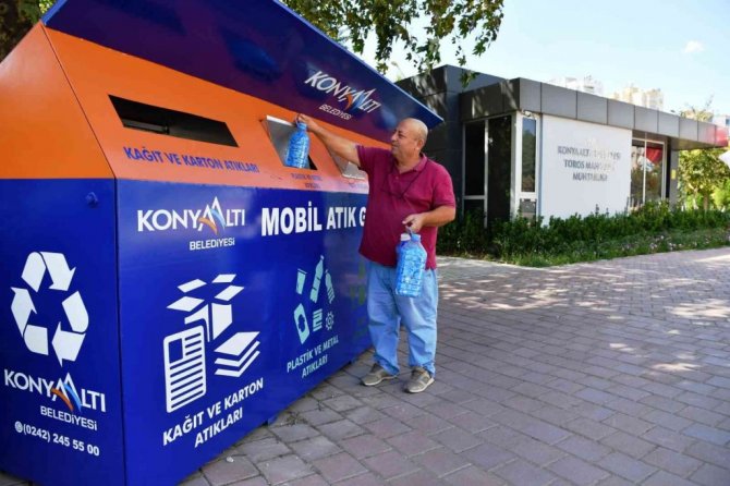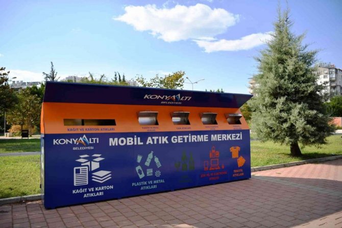 Konyaaltı Belediyesi, çevre kirliliğini önleme ve geri dönüşüm atıklarını ekonomiye yeniden kazandırma çalışmaları kapsamında ilçe genelinde beş noktaya "mobil atık getirme merkezi" yerleştirdi.