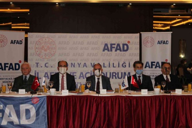 Uğur İbrahim Altay ise, "Bugün burada gerek ülkemiz gerek Konyamız tüm vatandaşlarımız adına önemli bir toplantıyı birlikte gerçekleştiriyoruz. Ülkemiz taşıdığı coğrafi özellikler nedeniyle doğal afetler yönünden ciddi riskler barındıran bir ülke. Ülkemizin jeolojik yapısının iklim özelliklerinin ve bazı beşeri etkenlerin neden olduğu deprem, sel, yangın, çığ ve heyelan gibi daha pek çok doğal afet tüm vatandaşlar için ön görülemez bir tehdit oluşturuyor. Özellikle ülkemizin önemli bir bölümünün deprem kuşağında yer alıyor olması bu risklerin belki de en başında geliyor. Bununla birlikte yüzyılımızı tehdit eden en büyük çevresel ve sosyoekonomik olgulardan biri olan küresel iklim değişikliği gerek hava kalitesini gerekse yaşamsal döngüyü olumsuz yönde etkilemeye devam ediyor. Bazı doğal afetlerin engellenmesinin imkansız olduğunu hepimiz biliyoruz. Fakat bu afetlerden kaynaklanan riskleri en aza indirmek bizim elimizde. İnsan sağlığını ve hemen hemen bütün beşeri ve ekonomik faaliyetleri olumsuz yönde etkileyen bu afetlerin yıkıcılığını önlemek için risklerin önceden belirlenip gerekli önemlerin bu doğrultuda planlanması ve toplumun afete dirençli toplum haline getirilmesi hayati önem taşıyor" diye konuştu