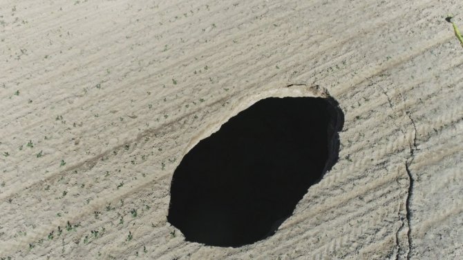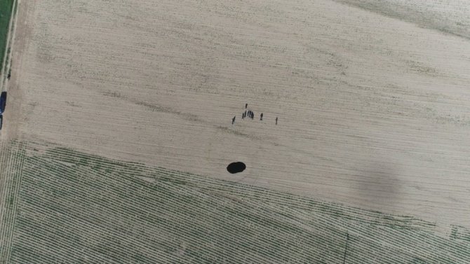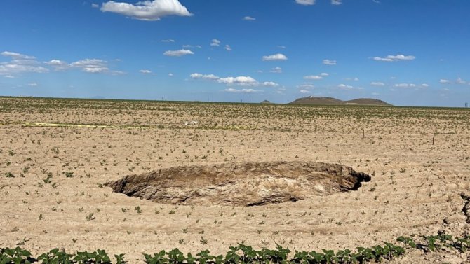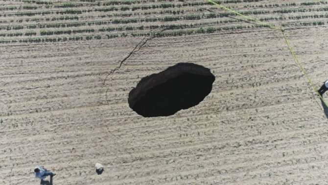 Konya'nın Cihanbeyli ilçesinde pancar tarlasında 20 metre çapında 15 metre derinliğinde obruk oluştu.