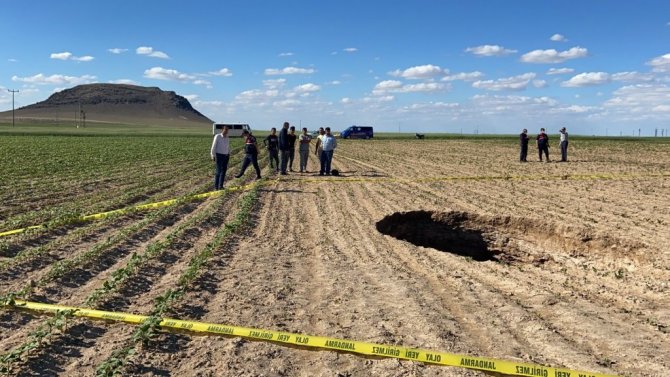 Tarlayı eken Talip Bağcı ise, "Sabah tarlamızı sürmeye geldiğimizde çok büyük bir tedirginlik yaşadık. Artık obrukların oluştuğunu ve sayılarının arttığını görüyoruz. Yetkililerinden yardım istiyoruz. Artık tarlayı ekmekten korkuyoruz" ifadelerini kullandı.
