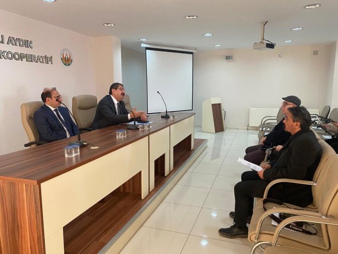 Tarım Kredi Kooperatifleri İzmir Bölge Müdürü Adnan Yusuf Güney, 200 Nolu Aydın Tarım Kredi Kooperatifi Müdürü Yalçın Ongun ve mensuplarının katılımıyla toplantı düzenlendi. Toplantıda, kooperatife olan borçlarını ödemekte güçlük çeken ortaklara sağlanan kurumsal yapılandırma imkanı, gübre ve yem fiyatlarında da indirime gidilmesi ve prime dayalı sözleşmeli üretim modeli hakkında bilgiler verildi.