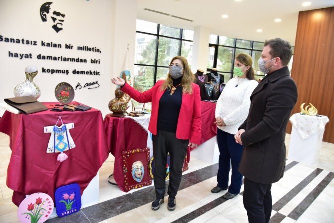 Beşirik, "Bu yıl 7'incisini düzenleyeceğimiz "Verilirse El Ele, Ulaşılır Her Yere" isimli sergimizi korona tedbirleri kapsamında yapamadık. Manisa Büyükşehir Belediyesi'nin destekleriyle sergimizi hazırladık. Sergi ziyaretçilere kapalı olarak internet ortamında yer alacak. Bizi bu gelişmede mutlu etti. Geleneksel olarak başlattığımız ve Manisa Büyükşehir Belediyesi'nin destekleriyle sürdürdüğümüz bu sergimizi bu sene de devam ettirmenin mutluluğu içindeyiz. Sergimizde birçok ürün yer alıyor. Kadınlarımızın gerek atölyede gerekse de korona döneminde evlerinde ürettiklerinin örneklerini koyarak sergilemeye çalıştık. Ahşap, takı, kitre bebek, seramik, su kabağı ve seramik hamurundan yapılmış dikiş, kırk yama ürünlerimiz sergilenmektedir. Ayrıca tamamen elde dikilerek yapılan deri ürünlerimizi de ekledik. Bir deri koleksiyonu oluşturuyoruz. Manisa'nın hediyelik eşyası olarak aklınıza ne geliyorsa üretebildiğimiz her şeyimizle Manisa'mıza turistlik eşya üretmeye çalışıyoruz. Bugün 21 Aralık Dünya Kooperatifçilik Günü ve birlikten kuvvet doğar şeklinde bir slogan ile çalışmalarımıza devam ediyoruz" diye konuştu.