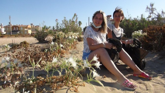 Mersin'in Silifke ilçesinde 25 kilometrelik uzunluğa sahip kumsalda yetişen kum zambakları, çiçek açmaya başladı.