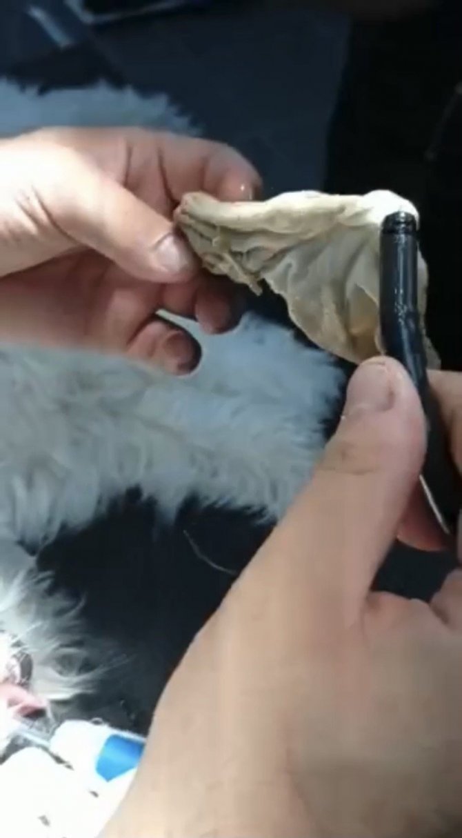 Zonguldak'ta 1 yaşındaki Puffy isimli köpeğin yuttuğu çorap endoskopiyle çıkartıldı.
