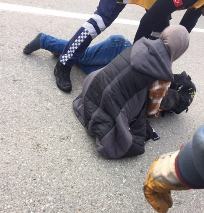 Iğdır'da çevre yolunda refüjde beklerken köpeklerin saldırmasıyla kendisini yola atan 112 Acil Çağrı Merkezi çalışanına minibüs çarptı.