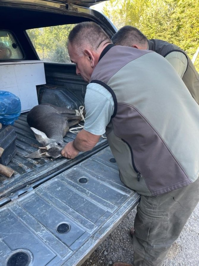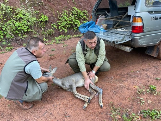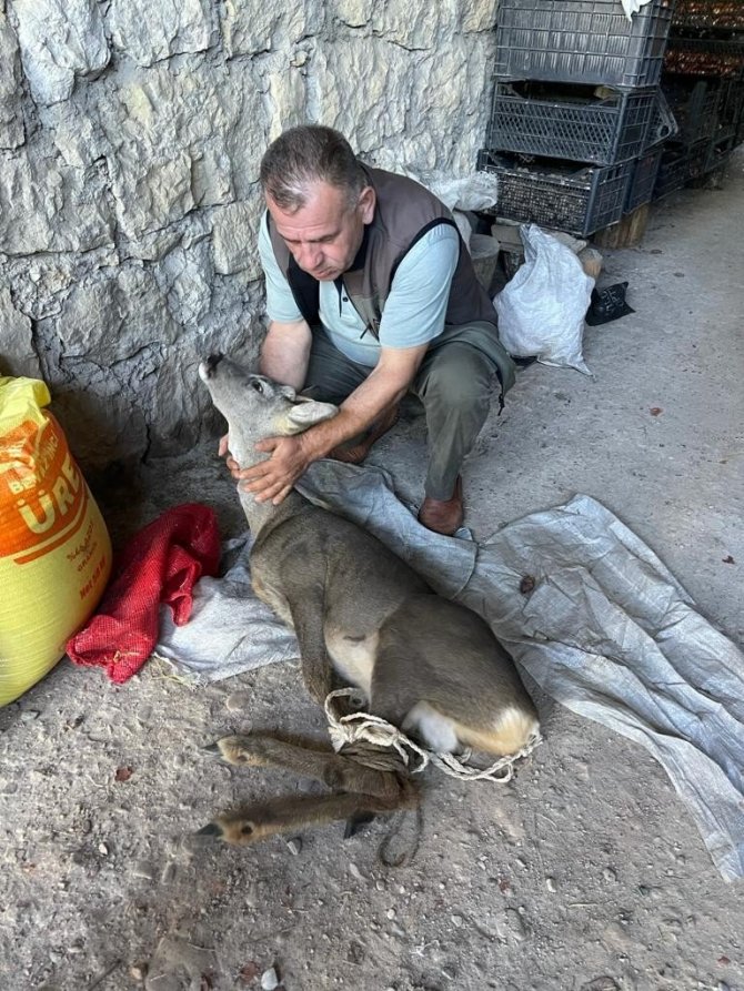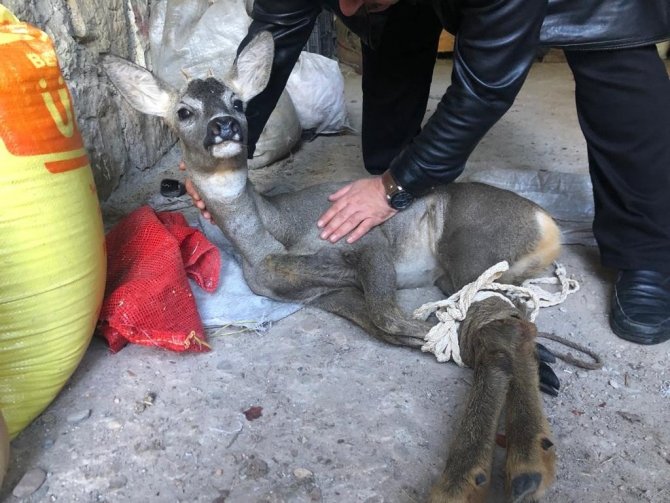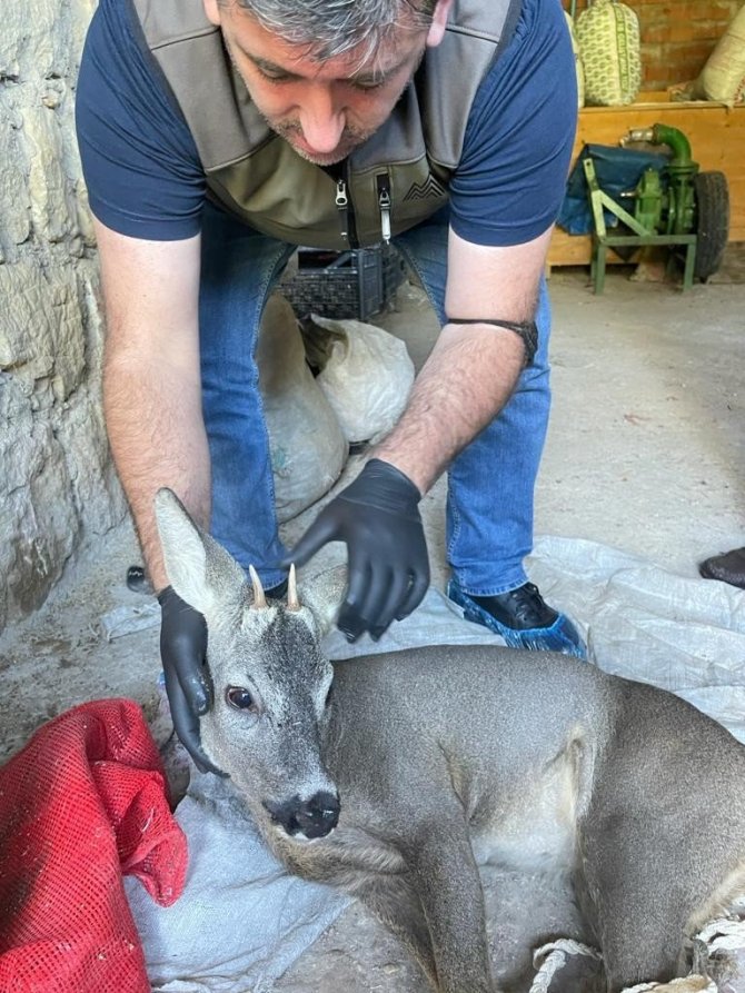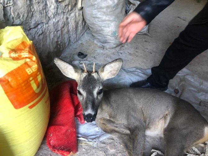 Köpeklerin saldırısına uğrayan karacayı köylüler kurtardı