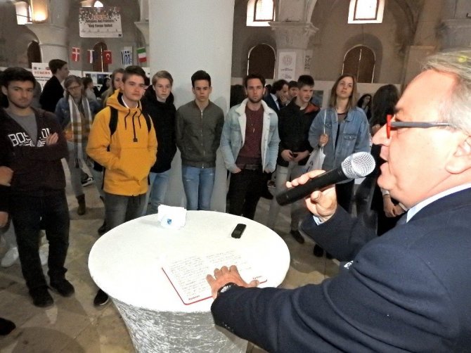 Televizyon Gazetecisi Korcan Karar, kendi çektiği ve 2017 yılında Alaçatı’da billboardlarda sergilediği mülteci fotoğraflarını, Anadolu Lisesi’ne bağışlarken, Erasmus projesi kapsamında, 4 ülkeden Çeş...