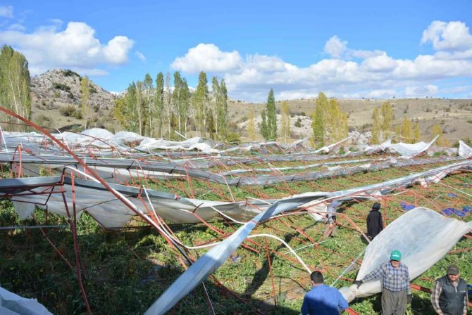 Korkuteli ilçesinde 18 sera hortumda zarar gördü