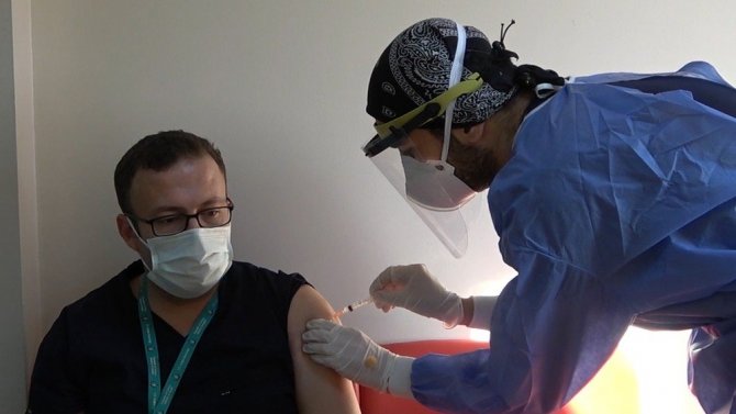Kırıkkale'de ilk doz aşılamanın üzerinden 28 gün geçmesi ile sağlık çalışanlarına ikinci doz aşıları yapılmaya başlandı.
