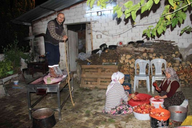 Korona virüs salgını ile birlikte doğal yaşam ve organik gıdaların öneminin bir kez daha ortaya çıktığını belirten evin gelini Yasemin Elkun,"Harun ile evlendikten sonra büyüklerimizden öğrendiğimiz yöntemle nar ekşisi yapımına biz devraldık. Eskiden ekşi narın kıymeti yoktu. Tüccarlar almadığı için pek çok kişi toplamazdı bile. Pandemi sürecine girildikten sonra pek çok kişi soslu ekşi yemeyi bırakıp doğal nar ekşisi tüketmeye başladı. Şu anda nar ekşisinin kilosu 50 TL'ye satılıyor. Pek çok kişi verdiği damak tadının yanı sıra şifa için tüketiyor. İhtiyacı olanlara bizler de doğal yöntemlerle ürettiğimiz nar ekşisinden veriyoruz" diye konuştu.