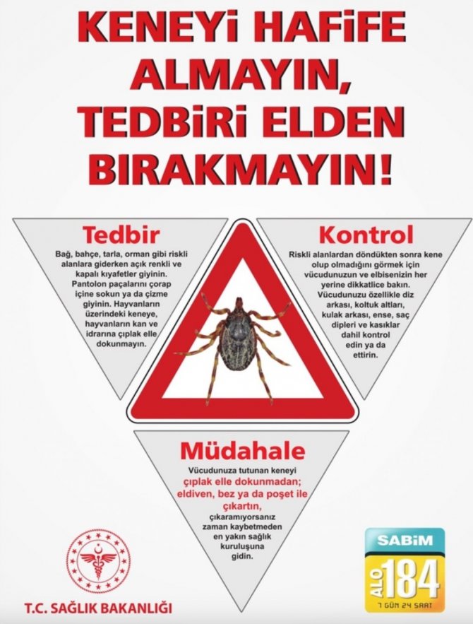 Kişinin keneyi çıkaramadığında en yakın sağlık kurumuna gitmesi gerektiğini ifade eden Doç. Dr. Şerife Akalın, "Kırım- Kongo kanamalı ateşinden korunmak için; tarla, bağ, bahçe, orman ve piknik alanları gibi kene yönünden riskli alanlara gidilirken, mümkün olduğu kadar vücudu örten giysiler giyilmeli, pantolon paçaları çorapların içerisine sokulmalı ve ayrıca kenelerin elbise üzerinde rahat görülebilmesi için açık renkli kıyafetler tercih edilmelidir. Kene yönünden riskli alanlardan dönüldüğünde kişi kendisinin ve çocuklarının vücudunda kene olup olmadığını kontrol etmeli, kene tutunmuş ise hiç vakit kaybetmeden, çıplak el ile dokunmamak şartıyla vücuda tutunduğu en yakın yerden tutarak uygun bir malzeme ile çıkarmalıdır. Kişi keneyi kendisi çıkaramadığı durumlarda en kısa sürede en yakın sağlık kuruluşuna başvurmalıdır. Hayvanların kanlarına, vücut sıvılarına veya dokularına çıplak el ile temas edilmemelidir. Sağlık çalışanları da KKKA'lı hastalarla temasta koruyucu önlemleri almalıdır" diye konuştu.