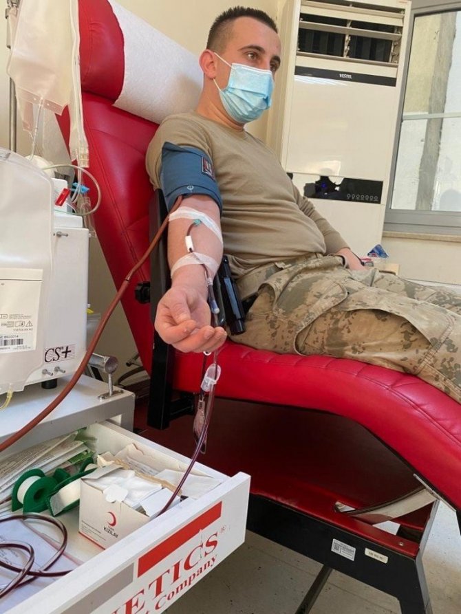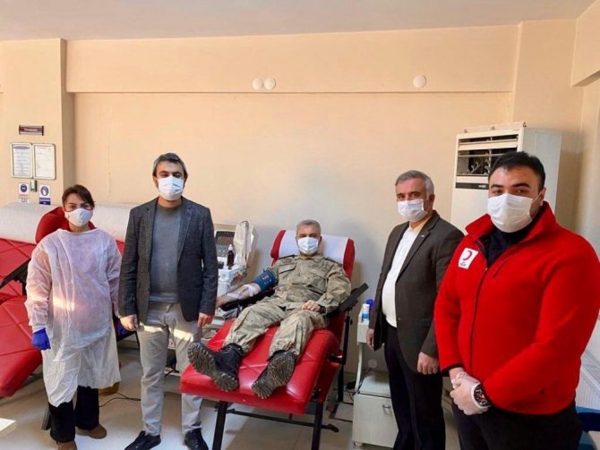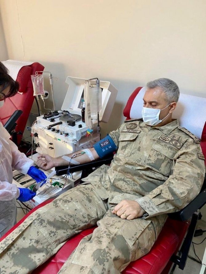 Covid-19'u yenen personeline örnek olan Jandarma Komutanı Yıldız'da kan vererek, bağışta bulundu.