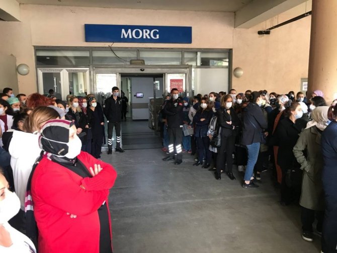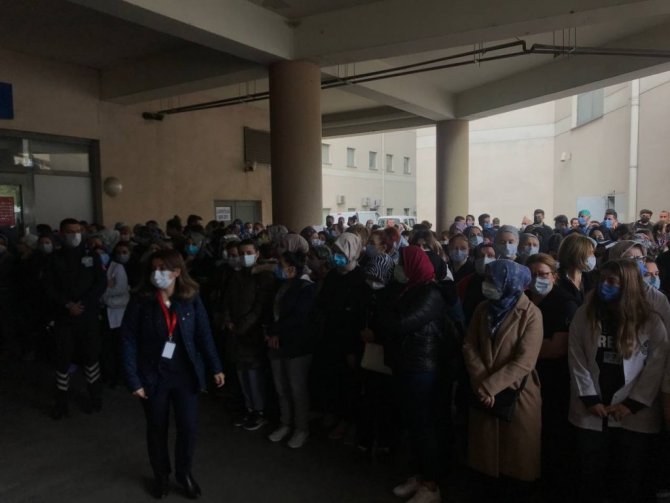 Sakarya'da korona virüse yakalanarak kaldırıldığı hastanede hayatını kaybeden hemşire Serap Yeşil'in cenazesi, hastanede düzenlenen törenin ardından...