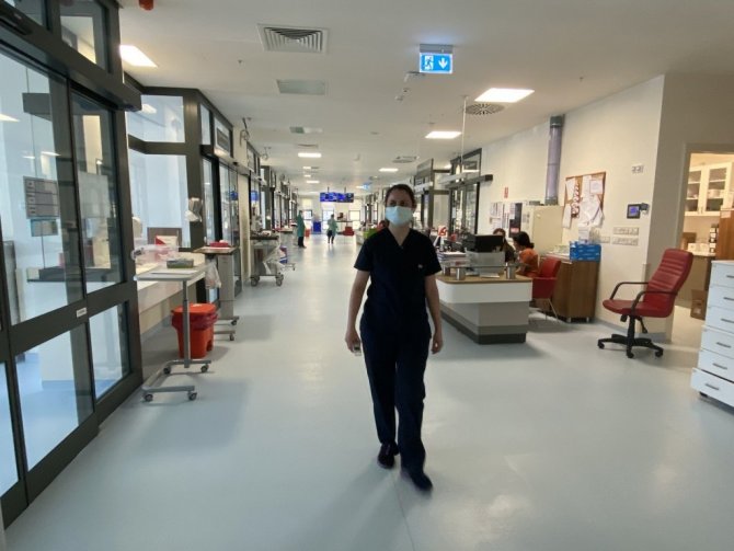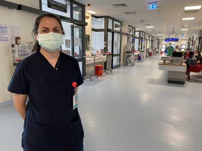 "İlk olarak eşim Covid oldu. Sonrasında ben pozitif çıktım. Evde maske ile dolaştık. Kızımın her zaman tepkisi "maskenizi çıkartsanıza, neden maske ile dolaşıyorsunuz" diyordu. Kızımın hala eve gittiğimde "annecim sana dokunabilir miyim?" diyor. Eve gittiğimizde dokunmasına hemen izin vermiyoruz. Bir insanın evladına dokunamamak çok acı bir şey. Yoğun bir şekilde çalışıyoruz. Bizimde emanet baktığımız insanlar var. Burada ki hastalar bize emanet. Elimizden geldiği en iyi şekilde bakmak zorundayız. Ben hastalığı atlatırken çok bir sıkıntı yaşamadım. Arkadaşlarım ağır atlattı. Hastanede 20 gün yatan arkadaşlarımız oldu. Bu süreç çok sıkıntılıydı. Biran evvel Covid bitsin istiyoruz. Hastalarımızın yanına normal giyinmeden tedbir almadan girmek istiyoruz."