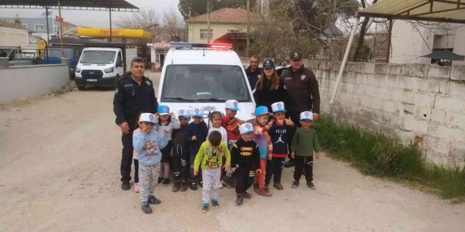 Minik öğrencilere kendileri için tehlikeli olabilecek davranışlar ve bu tür durumlarla karşılaştıklarında polisten nasıl yardım isteyeceklerini anlatan polisler, ziyaret sonunda öğrencilerle hatıra fotoğrafı çektirdi.